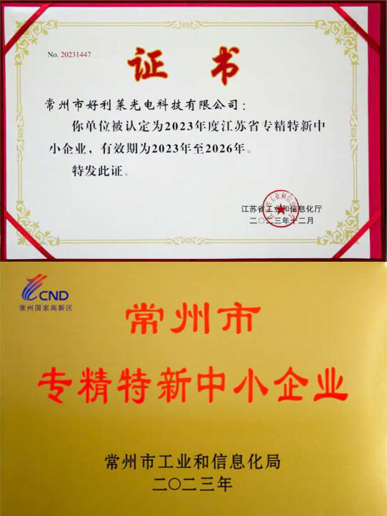 HLL sai kunnianosoitukset, kun hänet tunnustetaan korkean teknologian yrityksille Jiangsun maakunnassa, sekä erikoistuneen, hienostuneen ja innovatiivisen pienen ja keskisuuren yrityksen (SME) Jiangsun maakunnassa/Changzhou Cityssä.